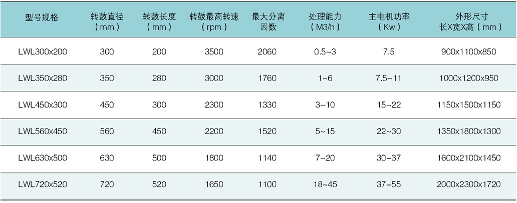 卸料過濾臥螺離心機型號規格:Specifications