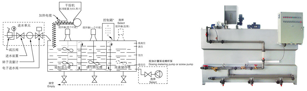 也有分批制備和投加功能的二槽式機型,或半自動制備系統,簡易型溶液藥裝置。